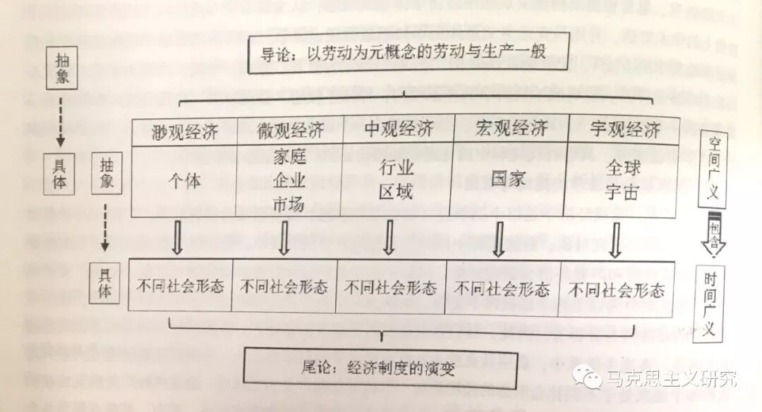 2016年,笔者曾提出构建五观政治经济学体系的设想,认为倘若要与现代西方经济学进行体系建构上的学术对话,并用马克思主义总体指导和超越该理论体系,就应该变通地合理借鉴其中某些方法和物理学的方法,把政治经济学的“五观”界定为渺观、微观、中观、宏观和宇观,形成新的政治经济学体系。五观政治经济学的体系结构,即依序叙述“渺观经济→微观经济→中观经济→宏观经济→宇观经济”。其目的在于,力图构建出一个以马克思主义经济理论为基石、科学吸收西方经济学有益成分、具有时代化和中国化理论创新特征的广义政治经济学体系。
